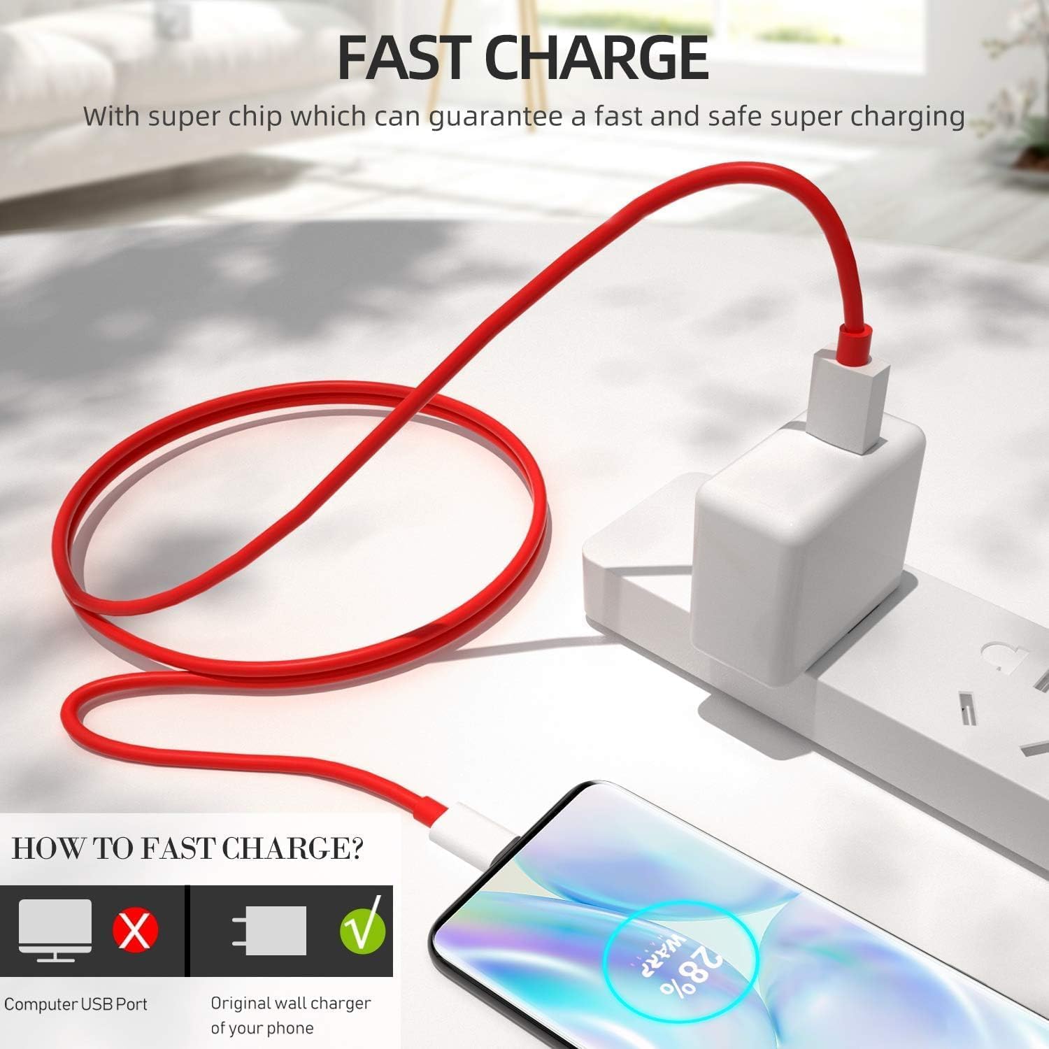 Warps/Dash Charging Cable: Oneplus Phones Can Be Quickly Charged With The Warp65 USB-C Charging Cable. The Thick Line and Oneplus Charger Work Perfectly Together. About 25 minutes is all it takes to charge 70% of the device’s capacity.