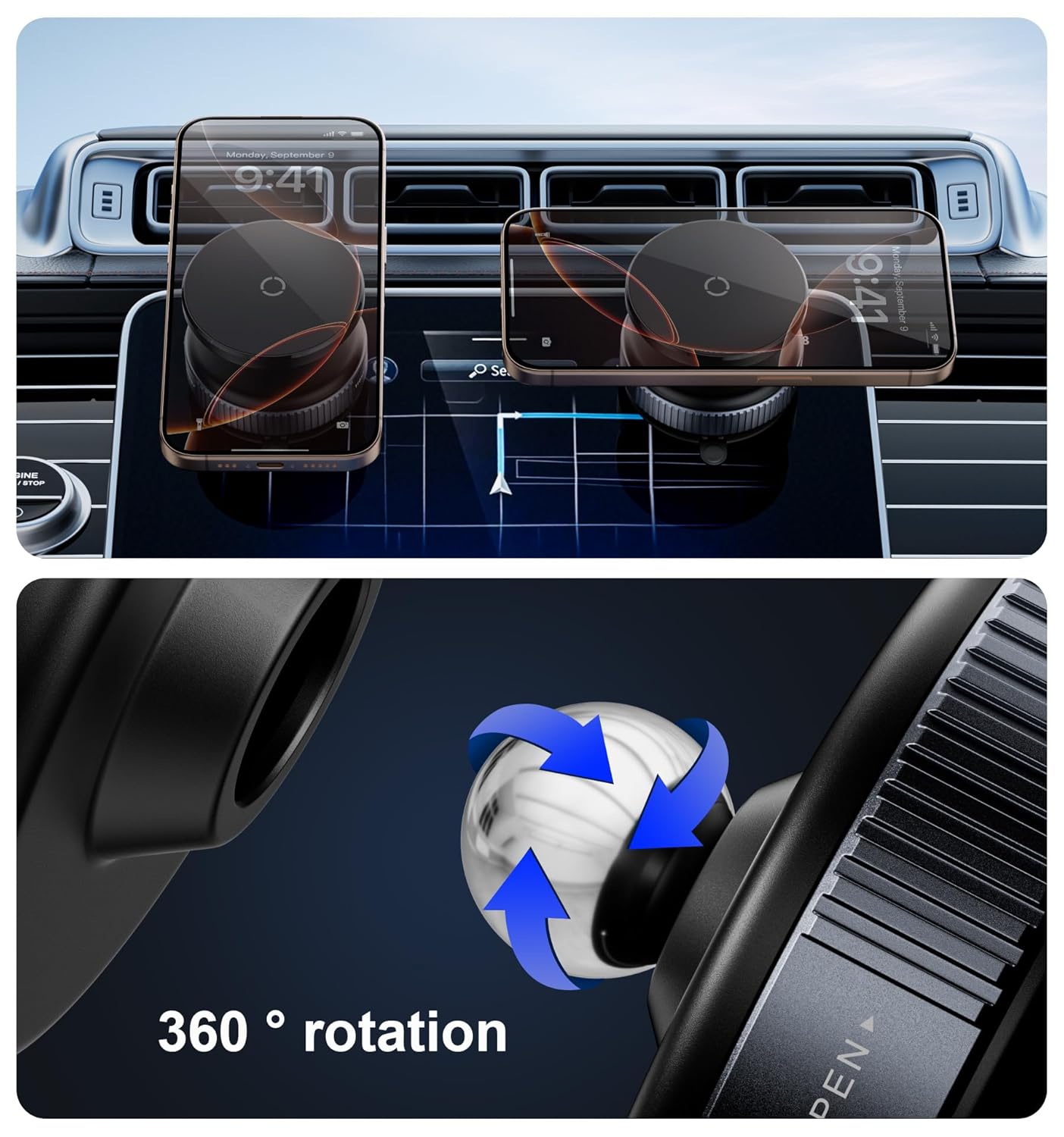 【360°Rotation with Three-Axis Stable Support】This car cell phone holder offers full 360-degree adjustability with a stable three-axis design that prevents loosening. The joint ball on this magnetic cell phone holder for car provides just the right amount of friction, allowing you to easily adjust the angle and keep it securely in place.