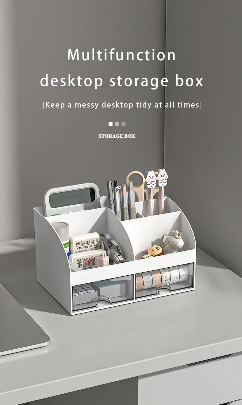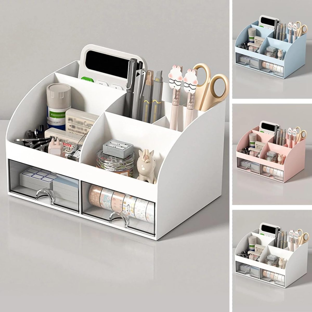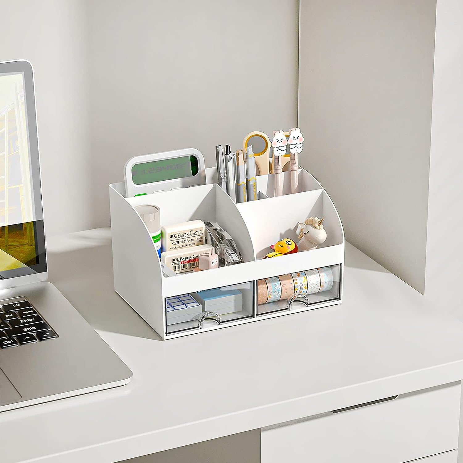 HOME CUBE Desk Organizer with Drawer Desktop Office Stationery Storage Box Desk Accessories Mobile Holder Table Organiser Study Table Office Table Desk Organizer (White, Plastic)