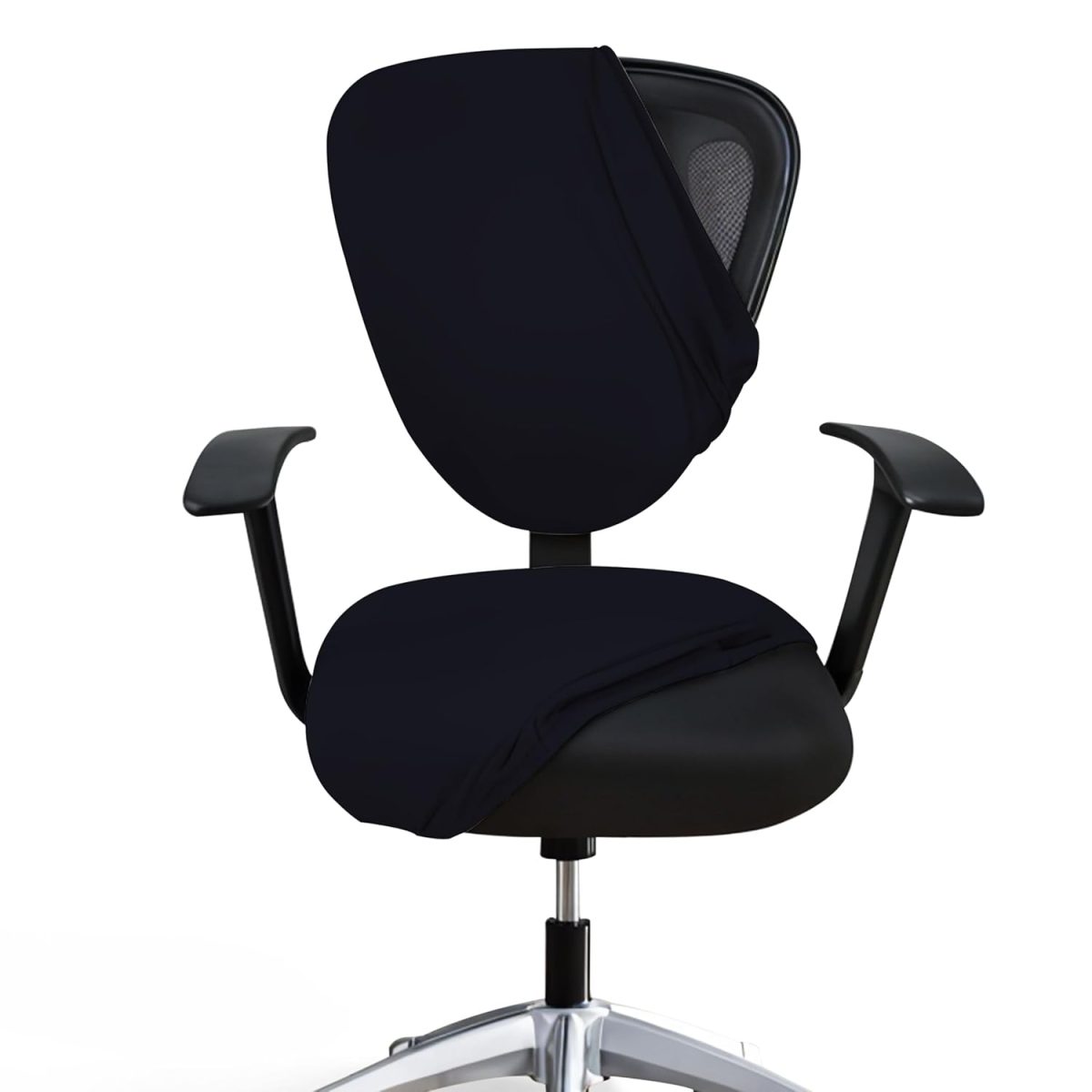 HOTKEI Black 2 Piece Set of 1 Office Chair Cover 200GSM Fabric Stretchable Elastic Polyester Removable Washable Office Computer Desk Executive Rotating Chair Seat Covers Slipcover Protector