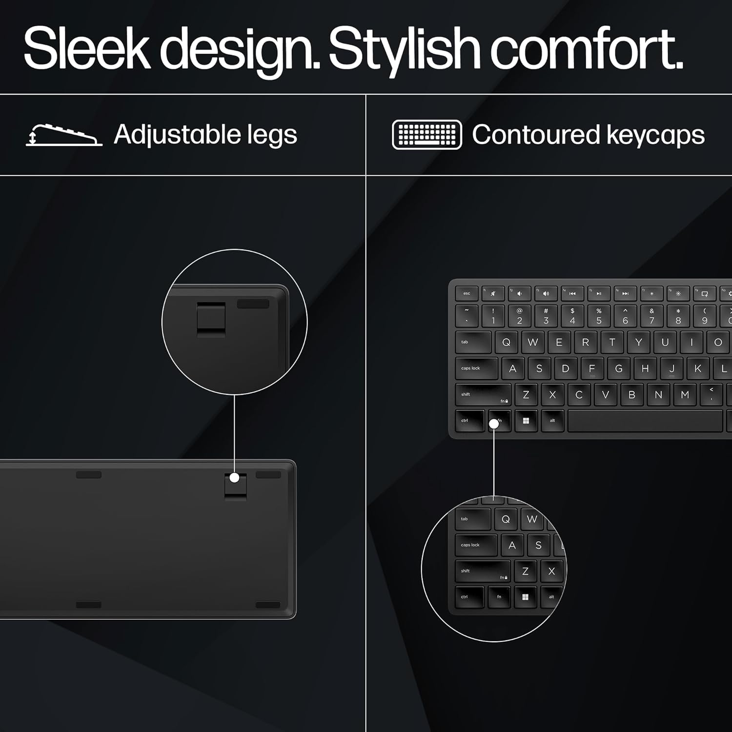 Sleek, Stylish & Comfortable: Small adjustments make a big impact when it comes to typing accuracy. This sleek, stylish keyboard includes legs that can be adjusted by up to 6 degrees and contoured keycaps so you can strike the right key. Plus 2.0 mm travel delivers all-day comfort.