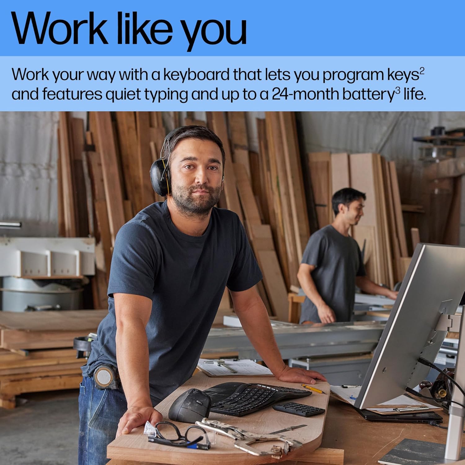 [Built for a better tomorrow] : The better choice for a brighter tomorrow, the HP Ergonomic Wireless Keyboard is made with 50% post-consumer recycled materials . With FSC certified packaging, you can be confident knowing you have a keyboard that does good things for the planet while doing amazing things for you.