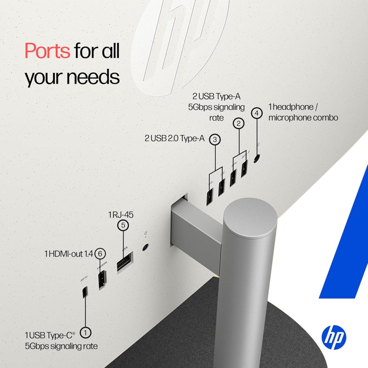 Features: Audio: Dual 2w speakers| Keyboard: HP 510SP White Wireless Keyboard and Mouse Combo| Wireless: Realtek RTL8852BE Wi-Fi 6 (2×2) and Bluetooth 5.3 wireless card (supporting gigabit data rate)| Power supply type: 90W Smart AC power adapter| Camera: HP True Vision 1080p FHD IR tilt privacy camera with temporal noise reduction and integrated dual array digital microphones