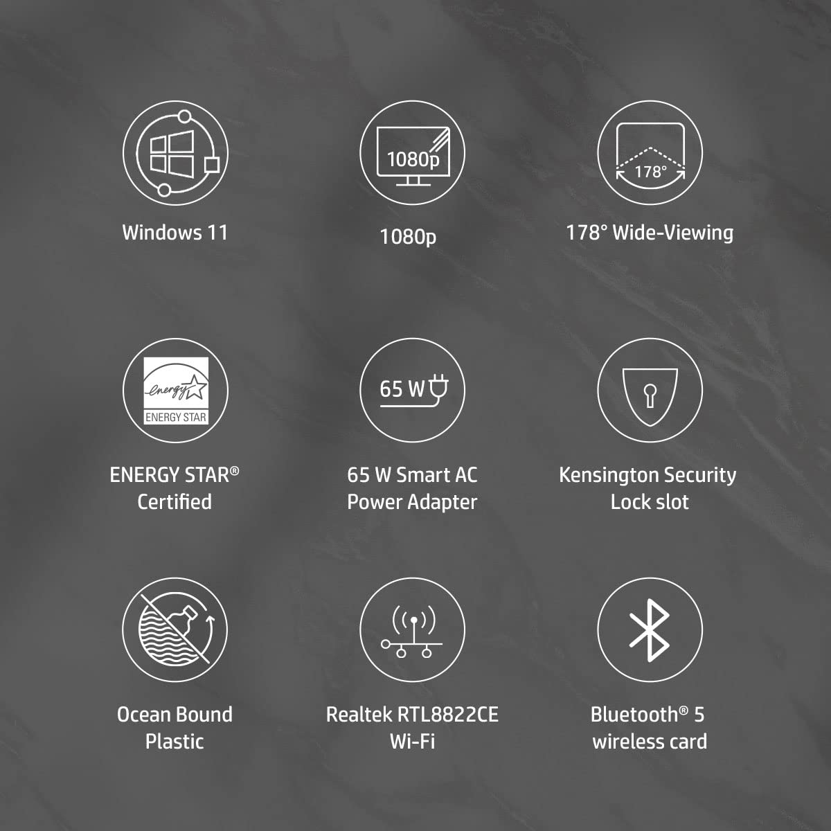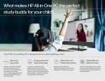 The HP All-in-One blends the power of a desktop with the beauty of a modern display. Powered by an Intel® processor[1], bring the cinema to you with a three-sided micro-edge, Full HD[2] display and dual speakers. This AiO design includes sustainable materials[3] and is designed to keep your space clutter-free with thoughtfully placed ports.