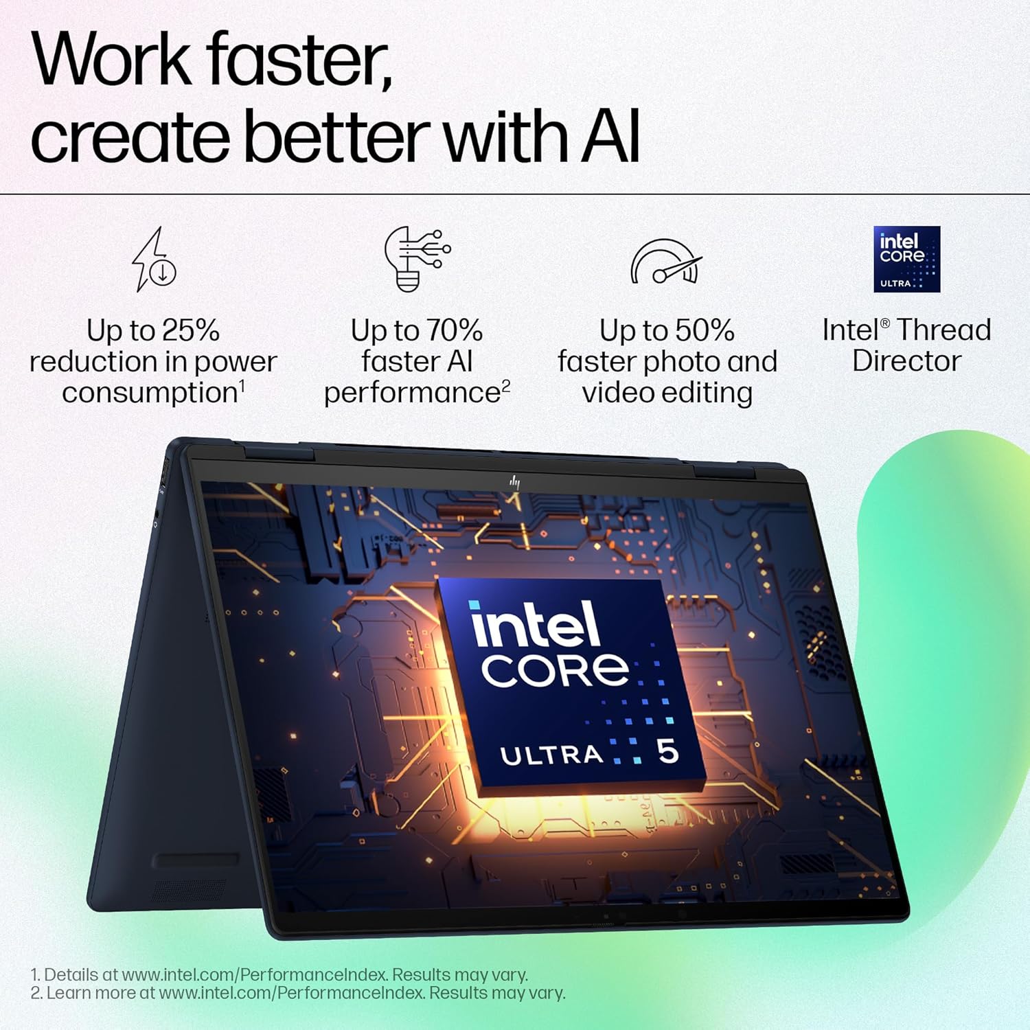 HP Envy x360 AI Laptop, Intel Core Ultra 5 125U, 12 TOPS, 16GB LPDDR5, 512GB SSD, (Win11, Office21, Blue, 1.44 kg) Touchscreen, 3K, OLED, 14-inch (35.6cm), Integrated graphics, 5MP IR camera, fc0078TU