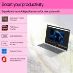 The HP 15.6″ Laptop PC comes feature-packed for productivity and making your wallet—and the planet—happy. Built with recycled materials, this powerful HP laptop features an AMD Processor[1], ample storage, and mesmerizing graphics—plus, its 85% screen-to-body ratio[2] and 3-sided narrow bezel offer plenty of room to do and see more that matters.