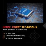 Processor, Memory & Storage: Intel Core i7-14650HX (up to 5.2 GHz with Intel Turbo Boost Technology, 30 MB L3 cache, 16 cores, 24 threads)| Memory: 24 GB DDR5-5600 MT/s (1 x 24 GB) | Storage: 1 TB PCIe Gen4 NVMe M.2 SSD