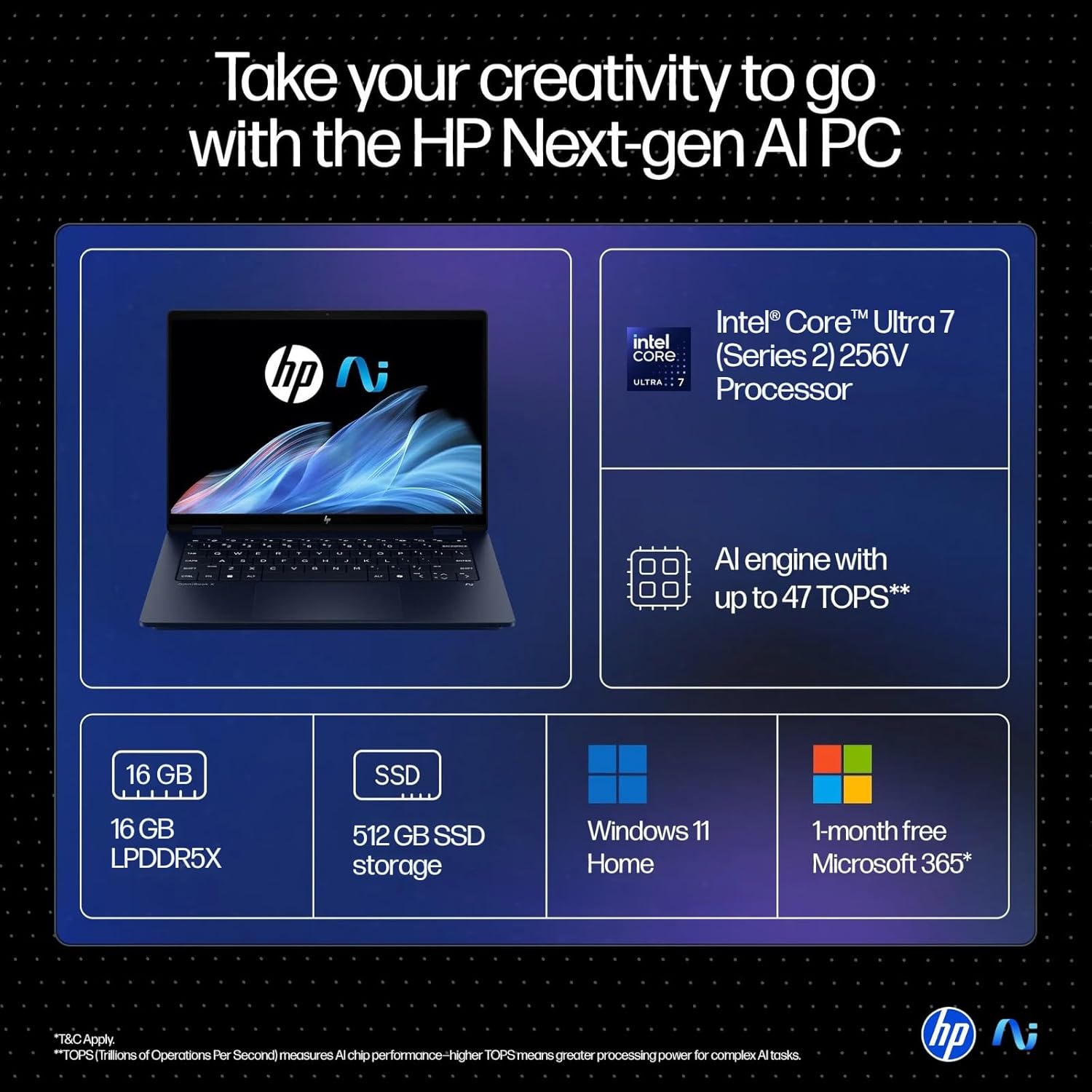 Processor, Memory & Storage: Intel Core Ultra 7 256V (up to 4.8 GHz with Intel Turbo Boost Technology, 12 MB L3 cache, 8 cores, 8 threads)| Memory: 16GB LPDDR5X 8533 on-board | Storage: 512 GB PCIe Gen4 NVMe M.2 SSD