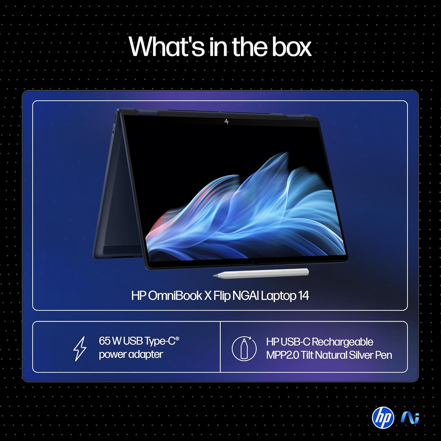 HP OmniBook X Flip (Previously Envy) Intel Core Ultra 7 256V 47 Tops (16GB LPDDR5X, 512GB SSD) 3K,OLED, 0.2ms,14”/35.6cm Touchscreen 2-in-1 Win11,Office24, Blue, 1.38kg, fm0026TU, Next Gen AI Laptop