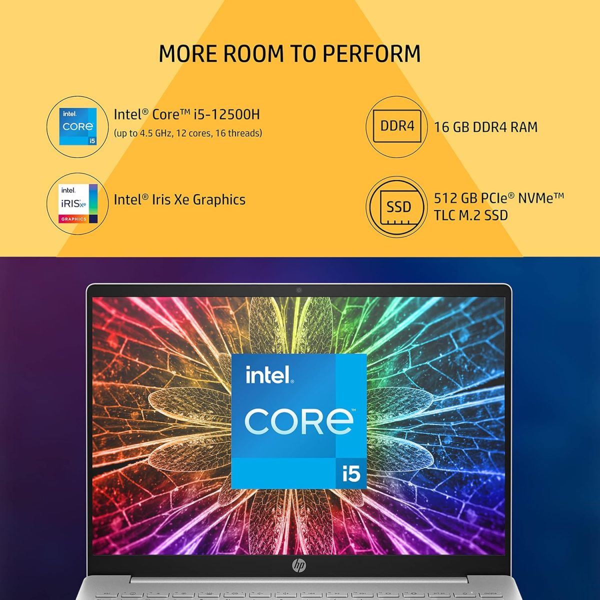Do Check Partner offer section for Exciting offers from HP; Processor: Intel Core i5-12500H (up to 4.5 GHz with Intel Turbo Boost Technology(2g), 18 MB L3 cache, 12 cores, 16 threads)|Memory: 16 GB DDR4-3200 MHz RAM (onboard)| Storage: 512 GB PCIe NVMe TLC M.2 SSD