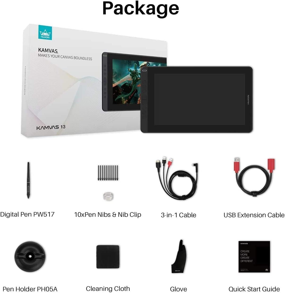 Kamvas 13 is the graphic display with full-laminated screen. The seamless combination of screen and glass will bring you the most natural drawing experience with precise cursor positioning and the lowest parallax. The 13.3inch 1920×1080 HD monitor with 120%s RGB gamut,16.7 million colors and 178° viewing angle presents you vibrant color