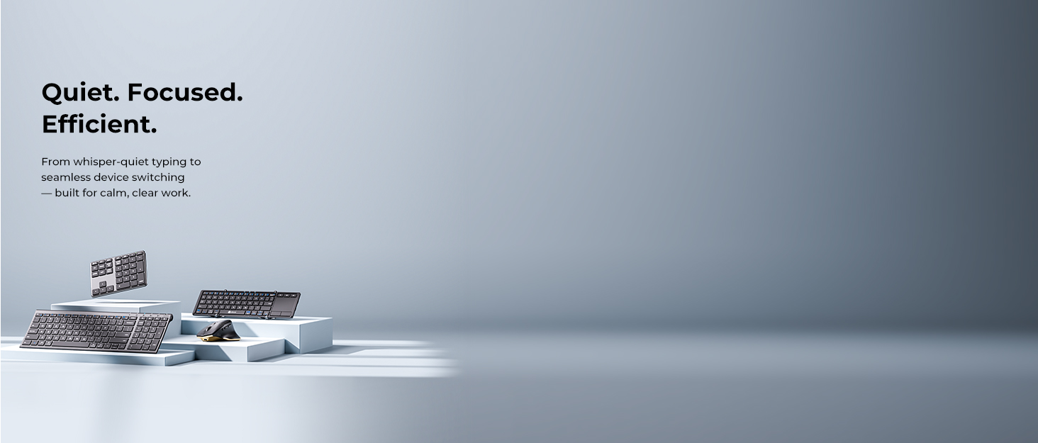 【Quiet Scissor-Switch Typing】: Low-profile keys stay below 50dB, paired with a silent-click mouse for distraction-free work in shared offices, home, or late-night study sessions.