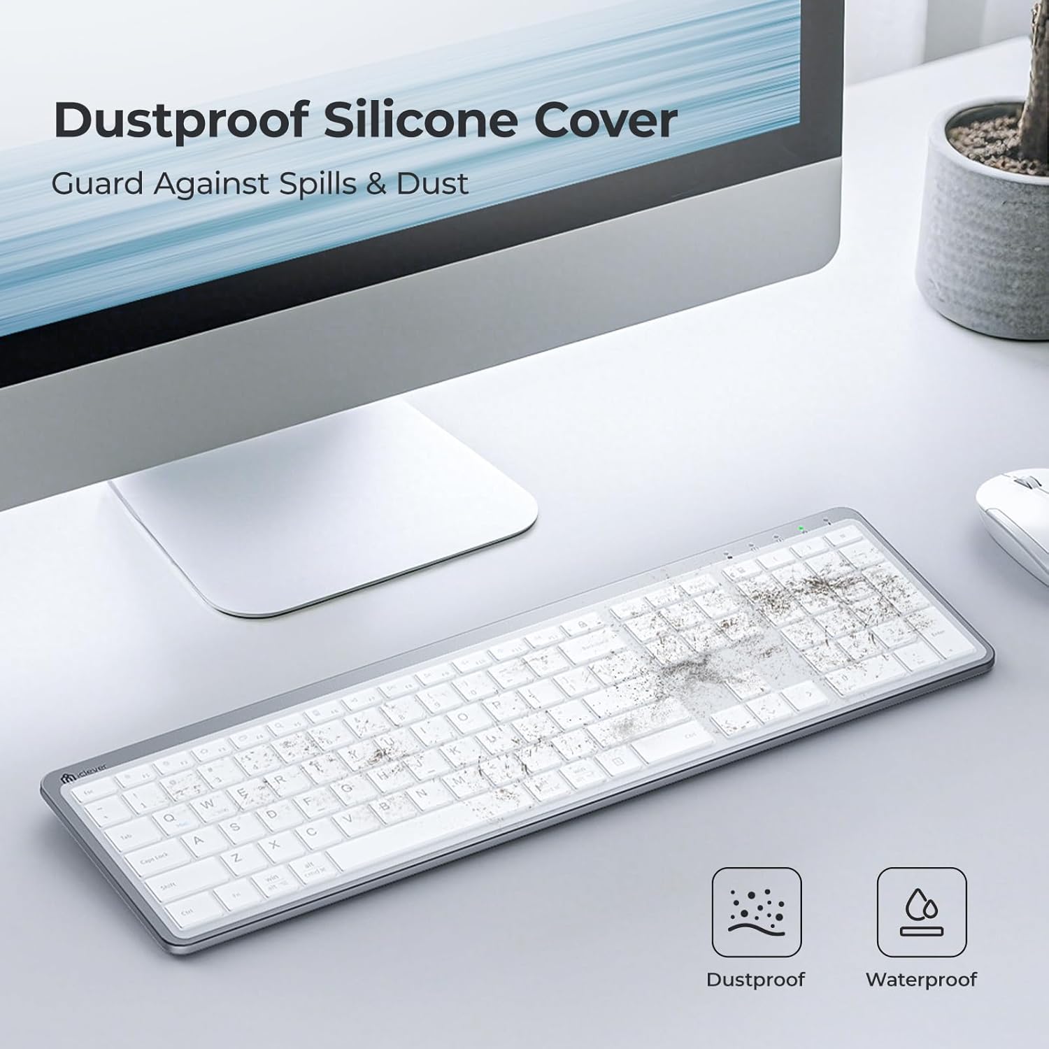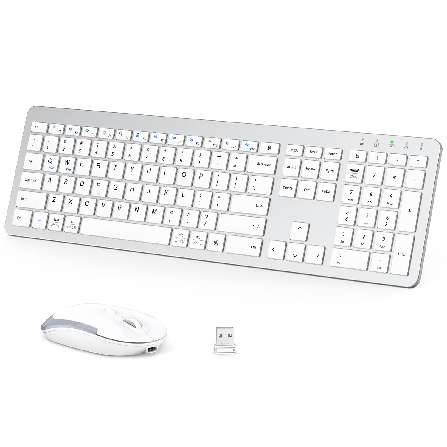​​iClever GK08 Wireless Keyboard and Mouse – Rechargeable Ergonomic Keyboard with Number Pad, Silent Typing, 2.4G Stable Connection, Slim Design for Mac & Windows (Silver)​​