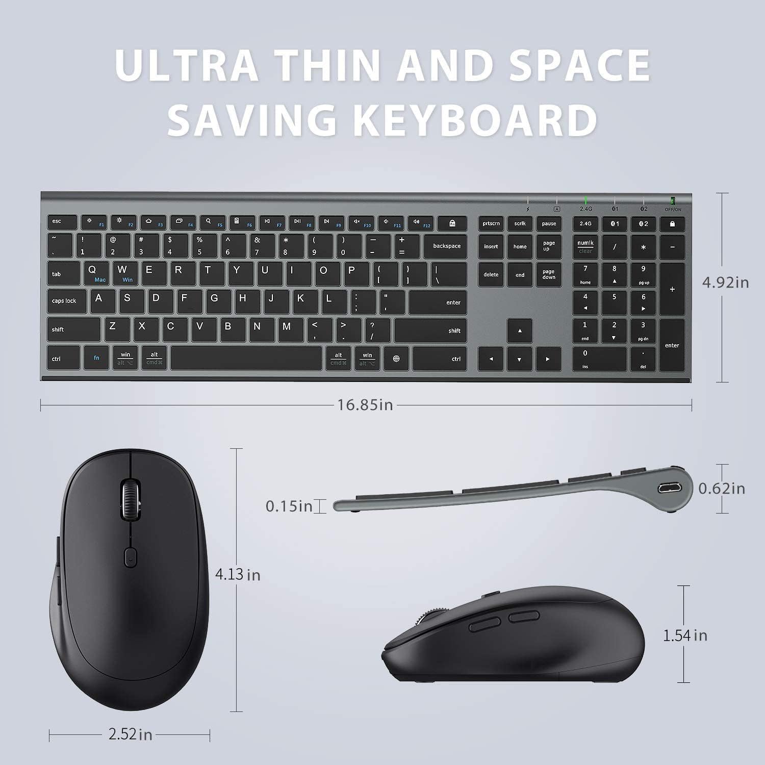 【MULTI-DEVICE CONNECTIONS】Both keyboard and mouse are dual-mode designed and three channels enabled(Bluetooth channel *2 + 2.4GHz USB channel *1). Effortlessly realize quick and smooth switch between 3 devices by pressing a single button.
