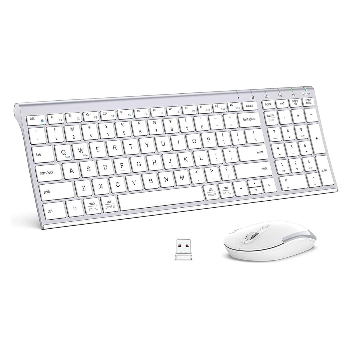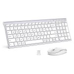 iClever Wireless Keyboard & Mouse Combo GK03-2.4G Portable Wireless Keyboard Mouse with Rechargeable Battery, Ergonomic Design, Full Size, Slim & Thin, Stable Connection, Adjustable DPI, Silver/White