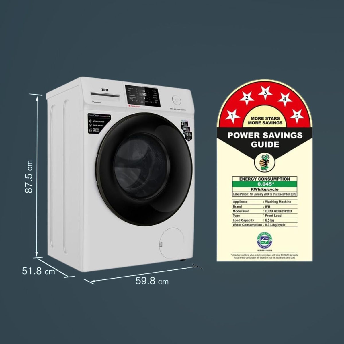 Be the first to review “IFB 6.5 Kg 5 Star, DeepClean® Technology, AI Powered, Fully Automatic Front Load Washing Machine (ELENA GXN 6510, PowerSteam®, 9 Swirl, Steam Refresh, Inbuilt Heater, Eco Inverter, Grey)” Cancel reply