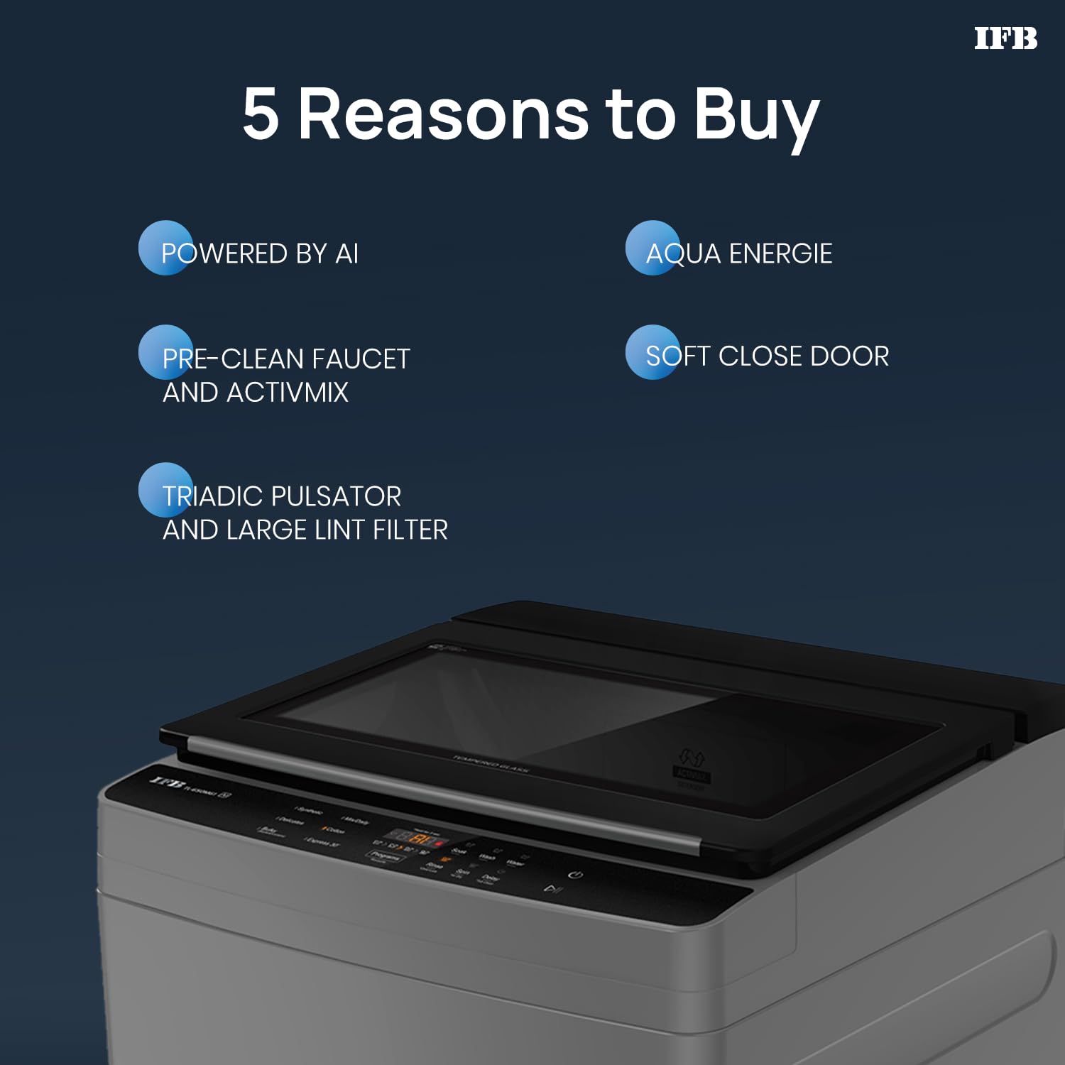 Fully-Automatic AI-Powered Top Load Washing Machine: This 6 kg fully-automatic top-load washing machine is designed for superior cleaning performance. Perfect for individuals, couples, or small households, it combines advanced AI technology and compact design to deliver powerful and water-efficient performance Powered by AI: Neural network-based algorithms automatically detect fabric type and load weight, optimizing water levels, wash actions, and cycle duration. This ensures better cleaning while reducing wear and tear on fabrics 5-Star Energy Rating: Certified for high energy efficiency, with an energy consumption of just 0.0106 kWh per cycle, it reduces operational costs while being eco-friendly Comprehensive Warranty Coverage: Enjoy worry-free ownership with a 4-year comprehensive warranty on the product, 10 years on the motor, and 10 years of spare part support, ensuring unmatched durability and performance 720 RPM High Spin Speed: Removes water from clothes, reducing drying time significantly. Ideal for monsoons or humid conditions 6+1* Wash Programs: Choose from tailored programs—Mix Daily, Cotton, Express 30′, Synthetic, Delicates, Bulky and Tub Clean. These programs are optimized for different fabric types, offering cycle durations starting from 30 minutes for customized washing DeepClean Technology with Triadic Pulsator: Combines three powerful wash actions—scrubbing, punching, and mechanical motion, delivering better stain removal. Ensures deep cleaning for tough stains like oil and grease without damaging fabrics Aqua Energie & ActivMix Technology: IFB’s patented Aqua Energie treats hard water to enhance detergent action, protect fabric color, and prevent fading, while ActivMix premixes water and detergent for faster, more effective cleaning. The machine is designed to work efficiently with water pressure ranging from 0.3 to 10 bar Durable Rust-Proof Drum: Made from high-grade stainless steel, the drum is rust-resistant and long-lasting, with strategically placed holes to enhance cleaning efficiency. Its durable build ensures reliable performance for over 10 years Included in the Box: The package includes 1 Washing Machine, 1 Inlet Pipe (1.5 meters), 1 Drain Hose (2 meters). Installation and after-sales support are provided to ensure a seamless setup and operation. Brand warranty can be availed with Amazon invoice; user manual can be accessed from the brand website.