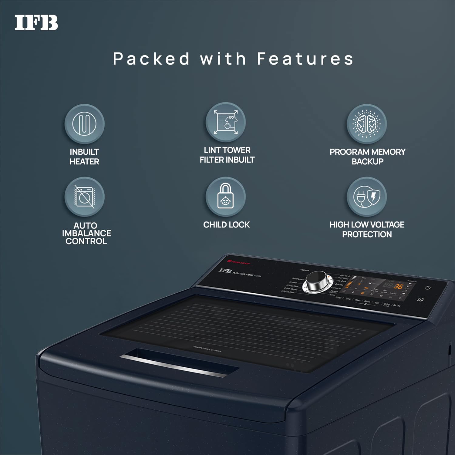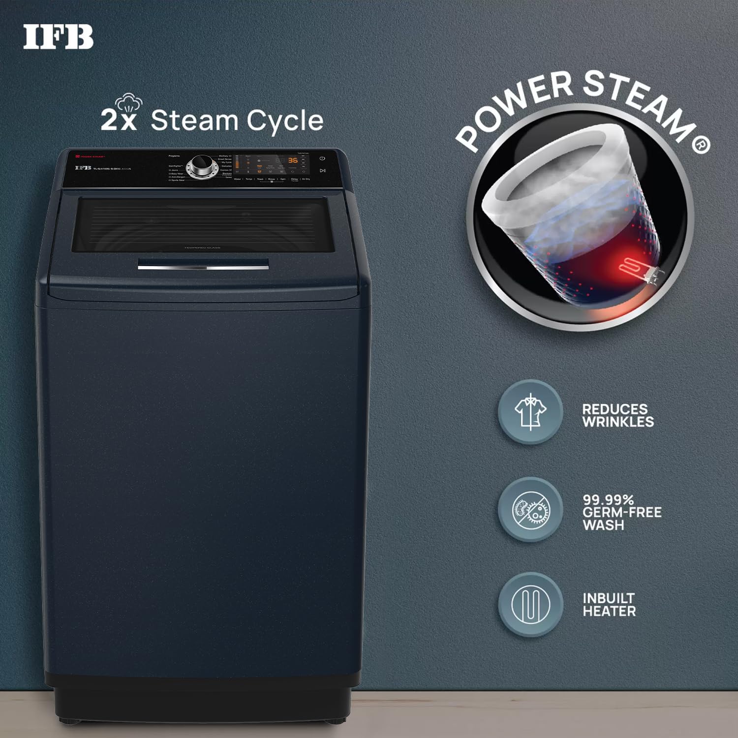 IFB 9.0 Kg Fully-Automatic Top Loading Washing Machine (TL-S4RBS 9.0 Kg Aqua, Royal Blue, 2X Power Steam, 4 Years Comprehensive Warranty)
