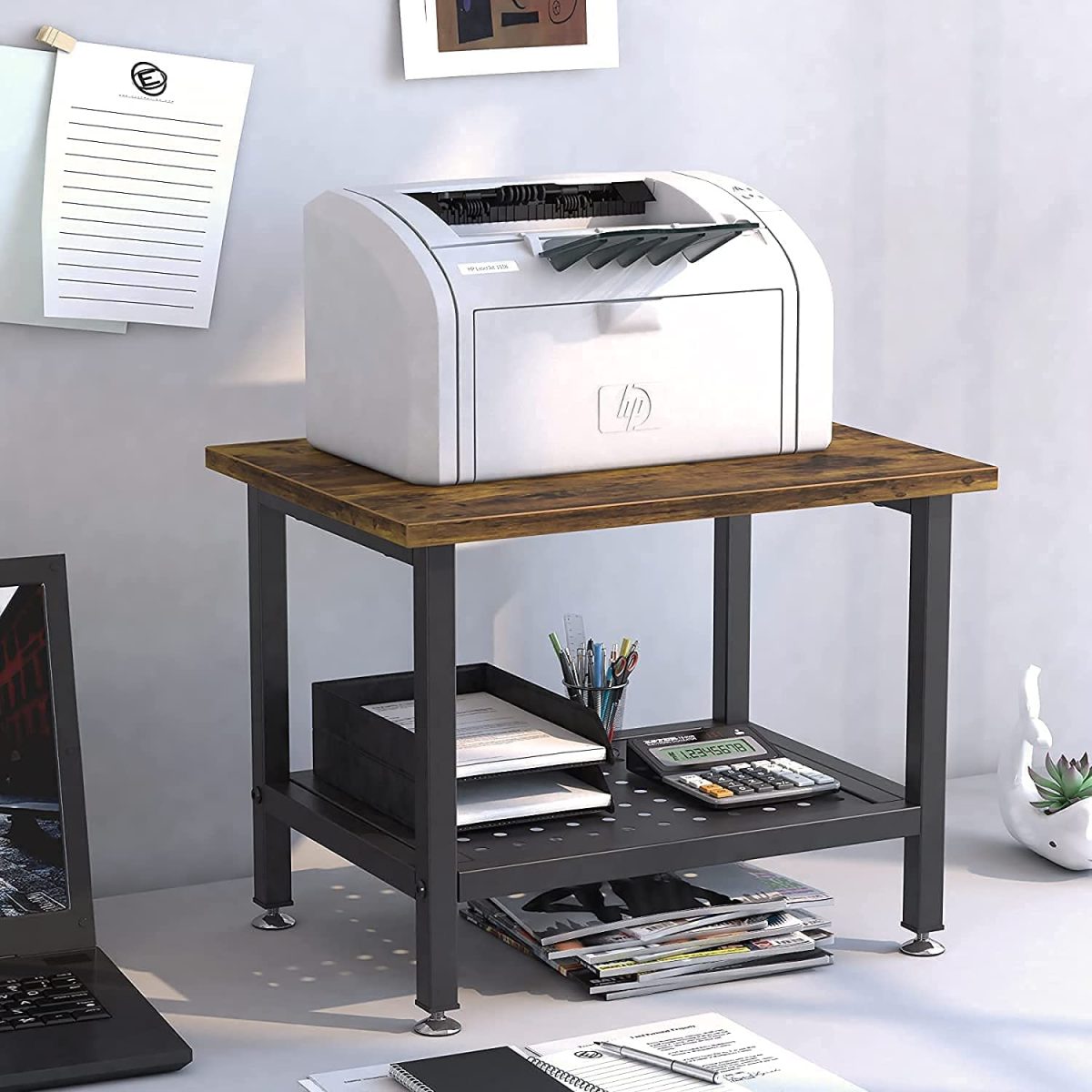 INDIAN DECOR 48158 Tabletop Printer Stand, 2-Tier Desktop Printer Stand with Storage Shelf & Adjustable Anti-Skid Feet, Home Office Printer Table Space Organizer for Printer, Scanner (Black).