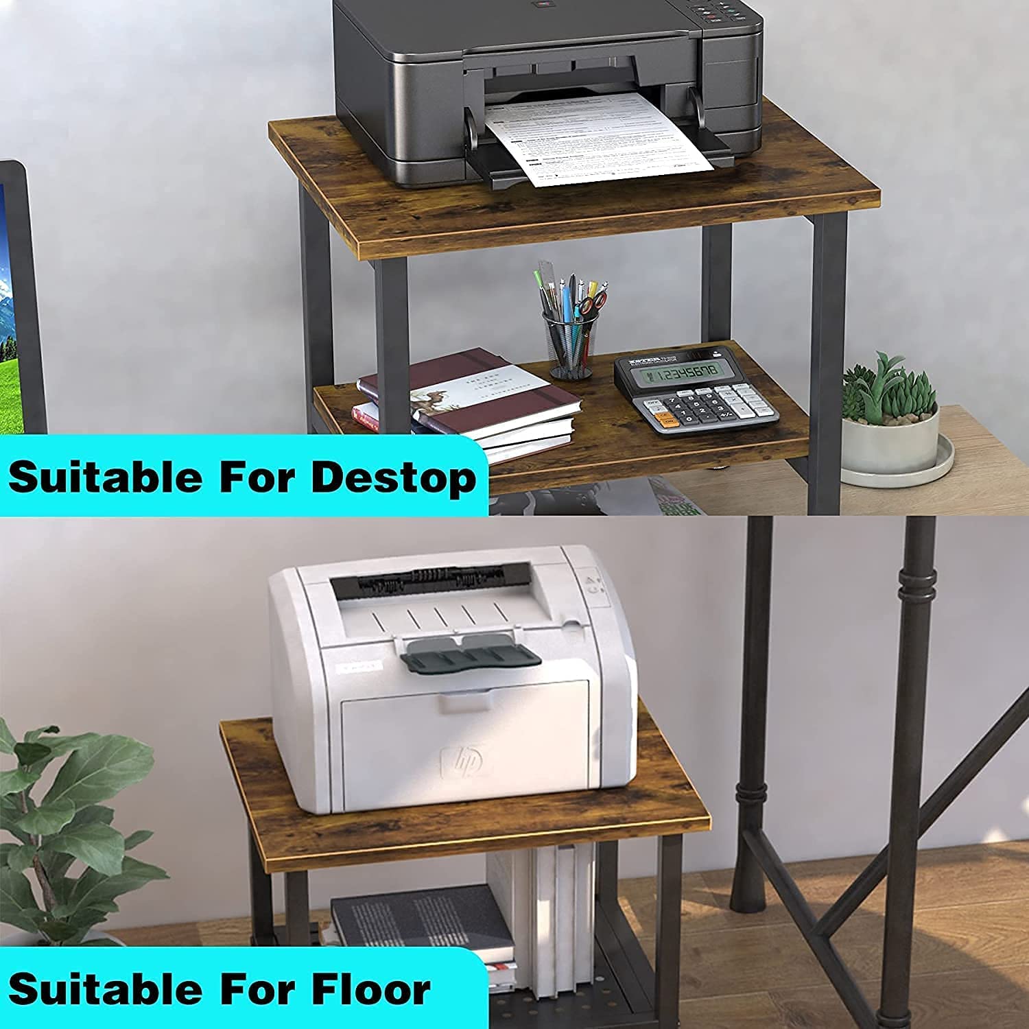 【PERFECT SIZE FOR ALL PRINTERS】 Home printer stands Dimensions: 15.7”(L)*11.8”(W)*11.8”(H), the height between two shelves is 7.1”. Max loading capacity: 120 Pounds. Printer shelf has successfully carried hundreds of different printers, fax machines, scanner or small laser jet and etc. Professional test over 1000 times, please feel free to use it.