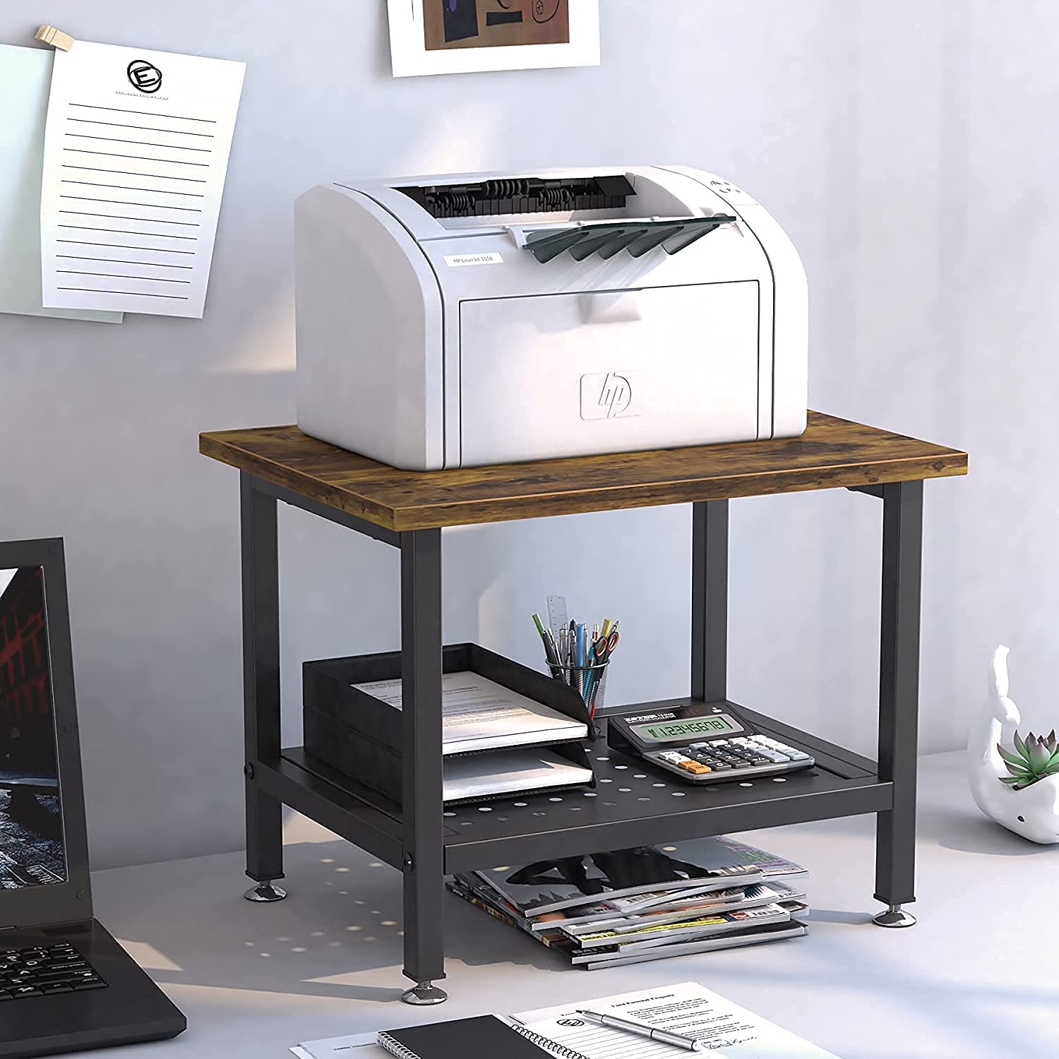 【EXTREMELY DURABLE and STURDY】 Printer table is constructed of 0.63-inch thick, high-quality, environmentally friendly particle board that is waterproof, easy to clean, and scratch-resistant. Heavy-duty powder-coated rigid metal frame and iron shelf prevent scratching the table top, ensuring many years of use. Small printer stand with 4 adjustable leg pads provide better stability.