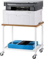 The desktop printer stand is built with a double-tier design, keeping the printer or scanner within easy reach of your desk to free up the workspace. The bottom shelf can help you to store paper, folders, ink cartridges, envelopes, and more other office supplies, and make your place tidy and neat.