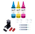 How To Refill: Suck required ink into syringe from the ink bottle. Around 3 -5 ML is required to fill in each colour holes and 3 ML – 15 ML in black cartridge. It Depends on your Cartridge mode, slowly push the piston of the syringe into the hole. It should be very slow and careful. Do not overfill the sponge. Watch carefully while injecting