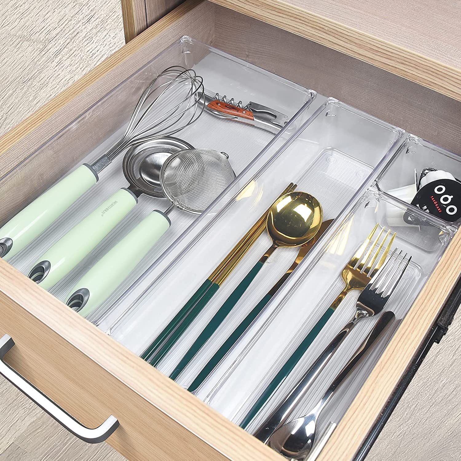BPA-FREE MATERIAL: Desk Drawer Organizer are made of high-end quality shatter proof BPA FREE PET material. Compared with PC, ABS and other materials, the material is friendly to our health and easier to wash by hand with mild soapy water. Warm Tips: DO NOT place in dishwasher!