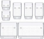 CUSTOMIZE LAYOUT AND HIGH QUALITY MATERIAL – 7 drawer trays in 4 different sizes allow you to customize the layout to fit any size drawer or specific need. Made of durable plastic, clear design can match almost any decor and make it easy to see your stuff and access what you want quickly, convenient for use.