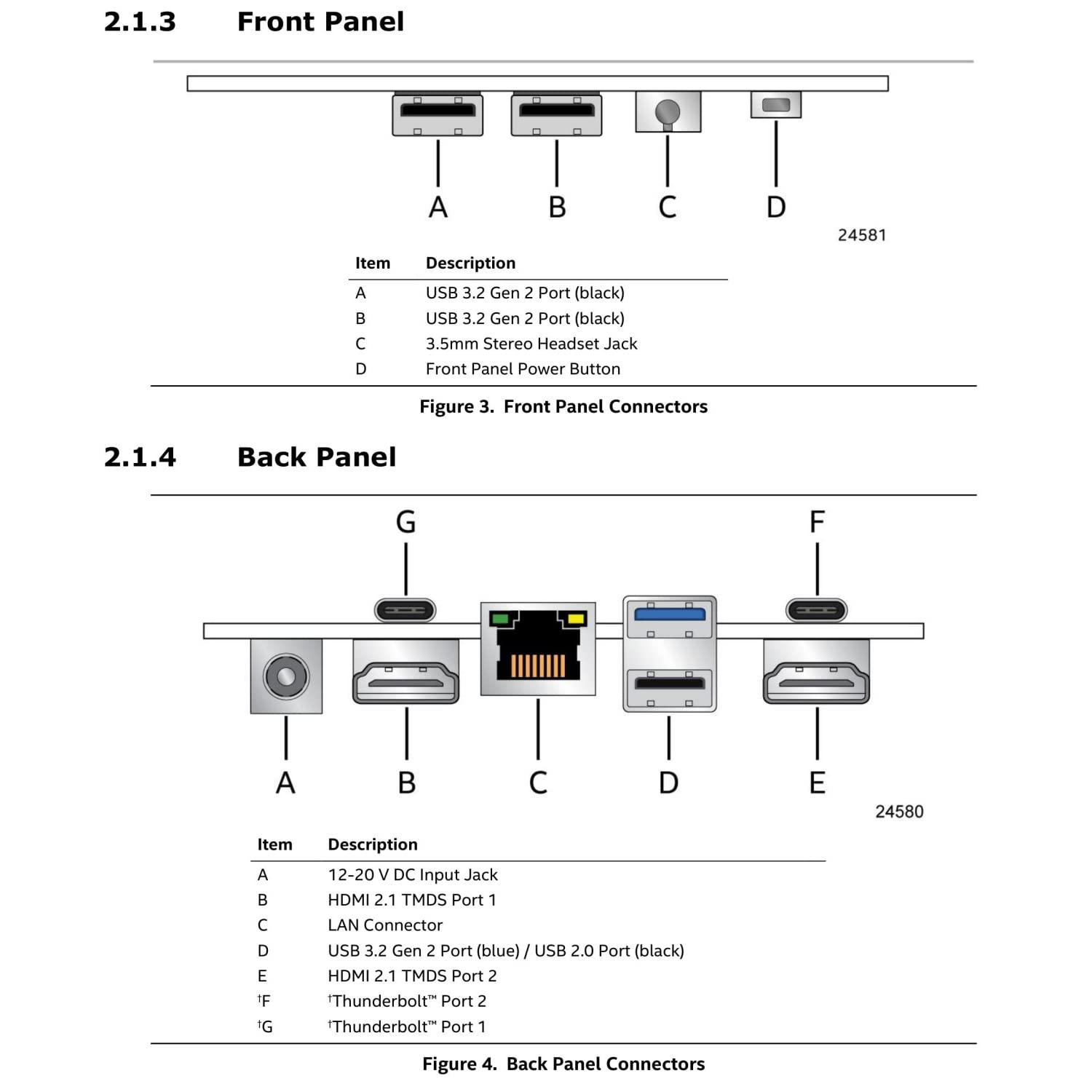 Networking: Intel Wi-Fi 6E (Gig+), Bluetooth 5.3; Ports: 2 Thunderbolt 4 ports, 1 Intel i226V 10/100/1000/2500 Mbps RJ45 Ethernet port, 1 HDMI 2.1b port, 2 USB 3.2 Gen 2 Type-A ports, 1 headphone/microphone combo jack, 1 Kensington lock slot, 1 microSDXC card slot.