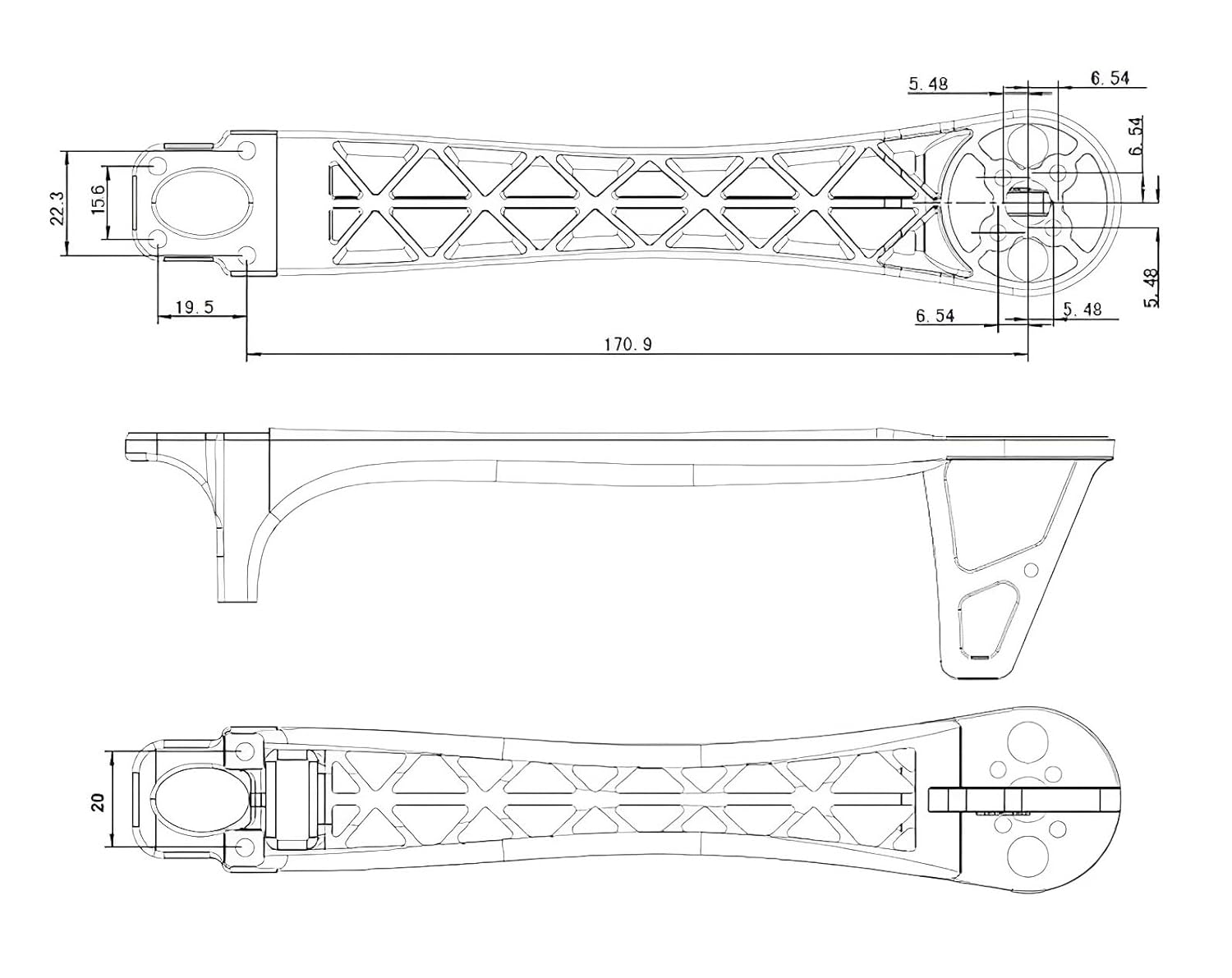 Size: 220×40×60 (LxWxH) mm; Motor Mounting Holes Dia.: 3 mm; Compatible Frame: F450 & F550