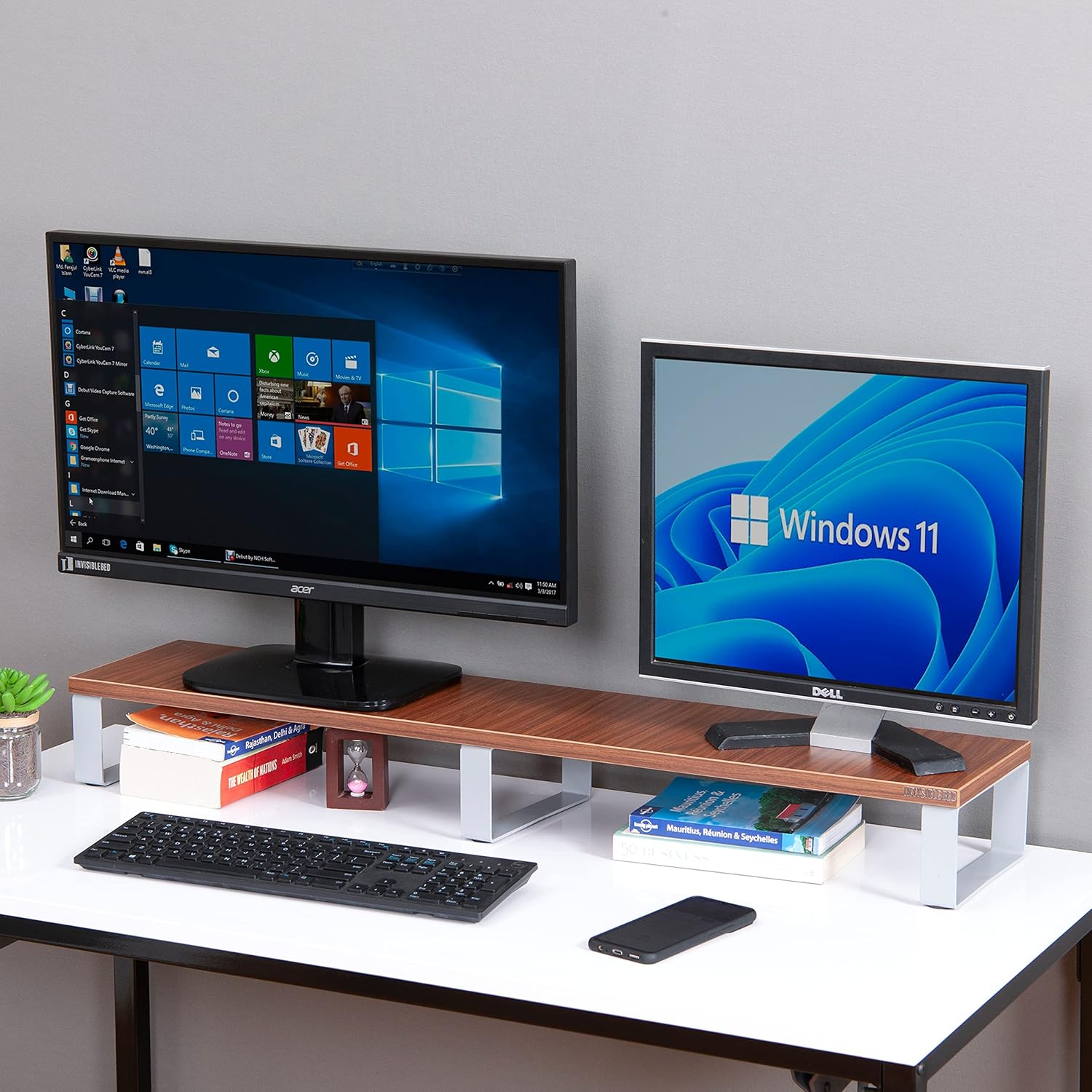 Enjoy the benefits of comfortable viewing angles and increased efficiency with Invisible Bed Dual monitor riser stand. Win back valuable desk space by elevating your monitors to an ergonomic viewing height with this sturdy and reliable stand. In addition to holding computer monitors, it can also be used to elevate TV’s, keyboard and mouse setups, laptops, and more! Plenty of storage space under to keep game console, controllers, books papers and other items.