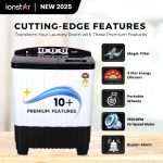 SPECIAL JET DRYER – Featuring a powerful Jet Dry system, this semi-automatic washing machine delivers rapid spin drying that significantly reduces moisture from clothes. The high-speed spin tub uses air turbo drying technology to remove excess water faster—perfect for monsoons or daily quick washes. Achieve faster drying times and hassle-free laundry days with this quick dry washing machine.