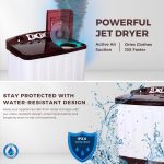 SPECIAL JET DRYER – Featuring a powerful Jet Dry system, this semi-automatic washing machine delivers rapid spin drying that significantly reduces moisture from clothes. The high-speed spin tub uses air turbo drying technology to remove excess water faster—perfect for monsoons or daily quick washes. Achieve faster drying times and hassle-free laundry days with this quick dry washing machine.