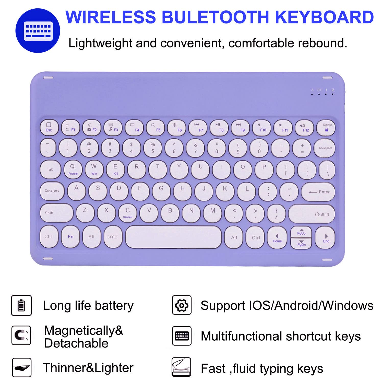 iPad Air Air2 iPad 5 iPad 6 Pro 9.7” Keyboard Cover iPad 6th 5th Generation 9.7” Color Bluetooth Keyboard Magnetic Detachable Cute Round Keycaps(iPad Air/Air2/iPad5/iPad6/Pro9.7, Purple)