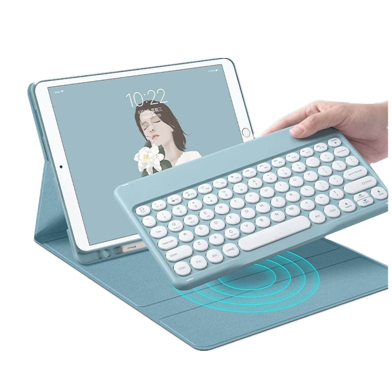 🦋 【BRACKET FUNCTION】With this Stylish and Elegant design, it can transform your ipad into a laptop in less than a second.very suitable for work, writing or watching videos.The latest popular colors of 2021 with cute round keycaps are deeply loved by the public.