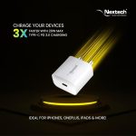 The Nextech 20W Type-C PD Wall Charger is a powerful and efficient charging solution designed for modern devices. It comes with an 18W Type-C to 8-pin 1.5M cable, ensuring fast sync and charge capabilities. Compatible with iPhones, iPads, Pixel devices, and even MacBooks, this charger delivers reliable performance with universal support. Its compact design and sleek white finish make it ideal for home, office, or travel use, while Power Delivery technology ensures quick and efficient charging every time.
