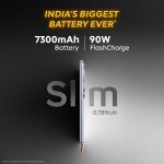 India’s Biggest Battery Ever: Equipped with India’s biggest-ever 7300mAh ultra-capacity battery. Despite its size, the device remains ultra-slim at just 0.789cm and light at 199g. With 90W FlashCharge technology, power up in no time and enjoy longer usage without the wait.