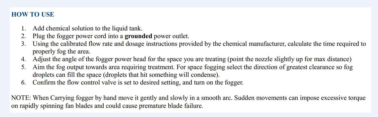 Adjustable Head and Rotation: Equipped with a vertically adjustable head and horizontal rotation for better direction, allowing precise fogging in targeted areas.
