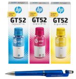 ITGlobal ® Value Pack Combo OG GT52 Cyan Yellow Magenta Ink Bottles for HP Selected Printer with 3in1 Multi-Function Creative Mobile Phone Stand, Stylus Pen, Ballpoint Pen (Very Colors) | GT 52 C/Y/M