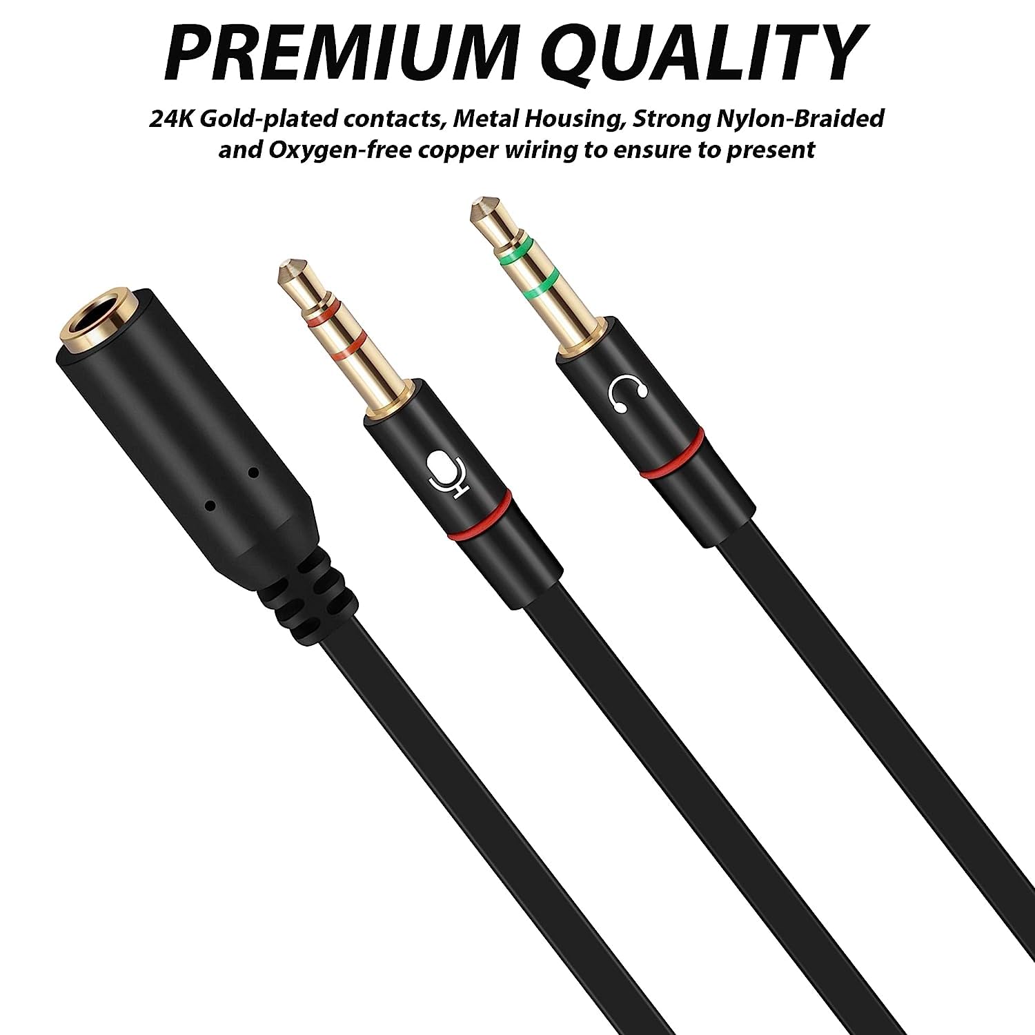 3.5mm audio Y splitter cable with Oxygen-free copper provide maximum’s conductivity and durability,Compact design for maximum portability – a great solution to have on hand in your laptop bag