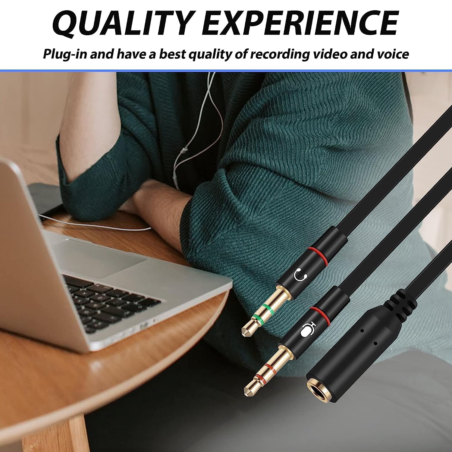 3.5mm Speaker and headphone Splitter with two male ports:one for Headphone Jack on your PC/Laptop,the other for Mic Jack on your PC/Laptop