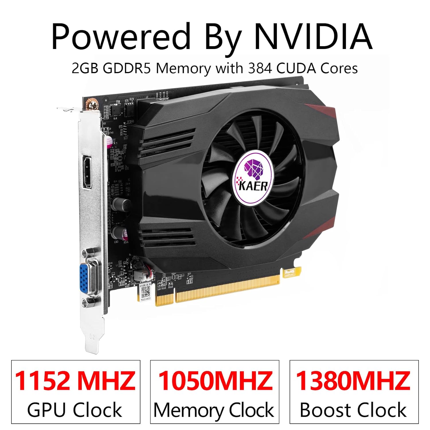 KAER GT 1030 2GB Memory GDDR5 64 Bit HDMI+VGA GPU