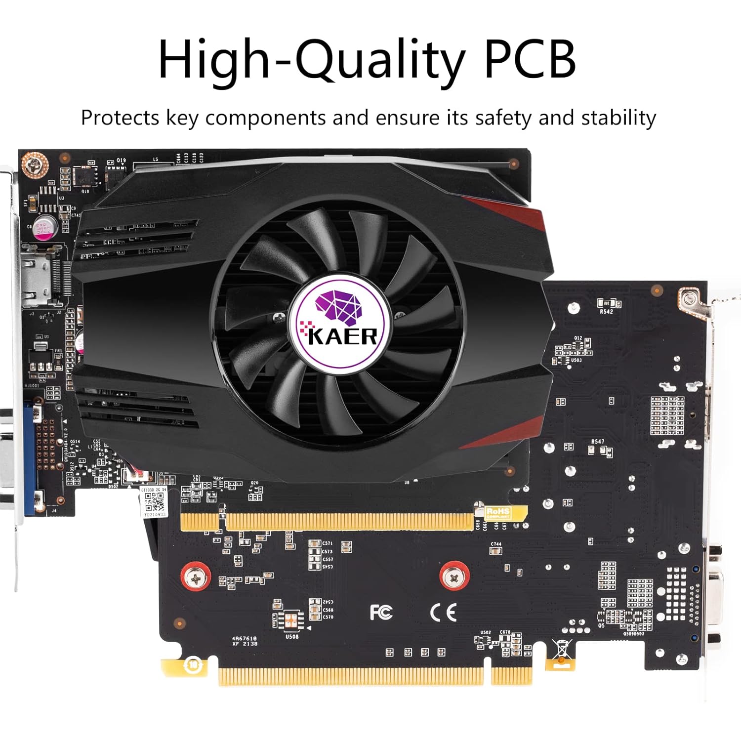 【QUIET AND STABLE】 GT1030 GPU with Silent fan provides a cool and quiet gaming experience.The high-quality electrical components and PCB plate ensure its safety and stability.
