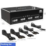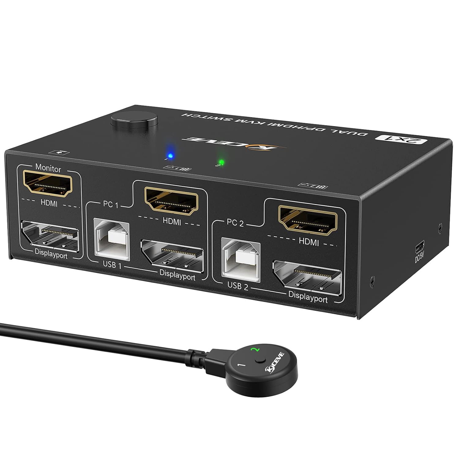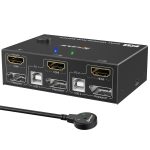 Name: dual monitor DP HDMI switchMaterial: Metal caseResolution range: Up to 4Kx2K@60HzSupport wired or wireless keyboard and mouseControl way: physical button control and wired controlKeyboard switch way: Not supportedHDMI Cable Range: <5M (Resolution: 1920*1080@60Hz)