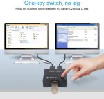 USB 3.0 switcher selector supports ultra-fast USB 3.0 data transfer, and is backward compatible with USB 2.0 and USB 1.1 devices. Save your time and improve the efficiency. Please note that this USB switch not support for two computers share monitor, it only for two computers share USB device.