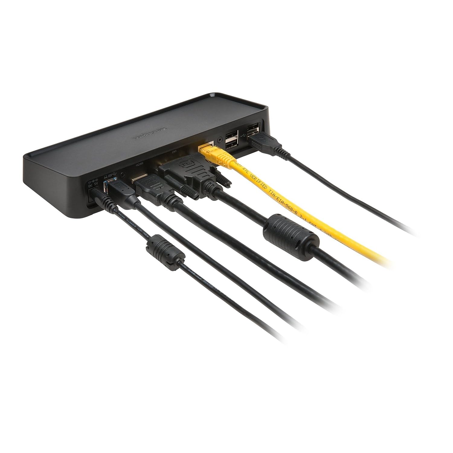 Video Ports: 1 x HDMI v1.3 and 1 x DVI-I (VGA supported with included DVI to VGA adapter); Maximum Resolution Supported: Single Monitor: 2560 x 1600 @ 60Hz and Dual Monitors: 2048 x 1152 @ 30Hz; DisplayLink driver installation required. Download software from kensington.com or via Windows update.