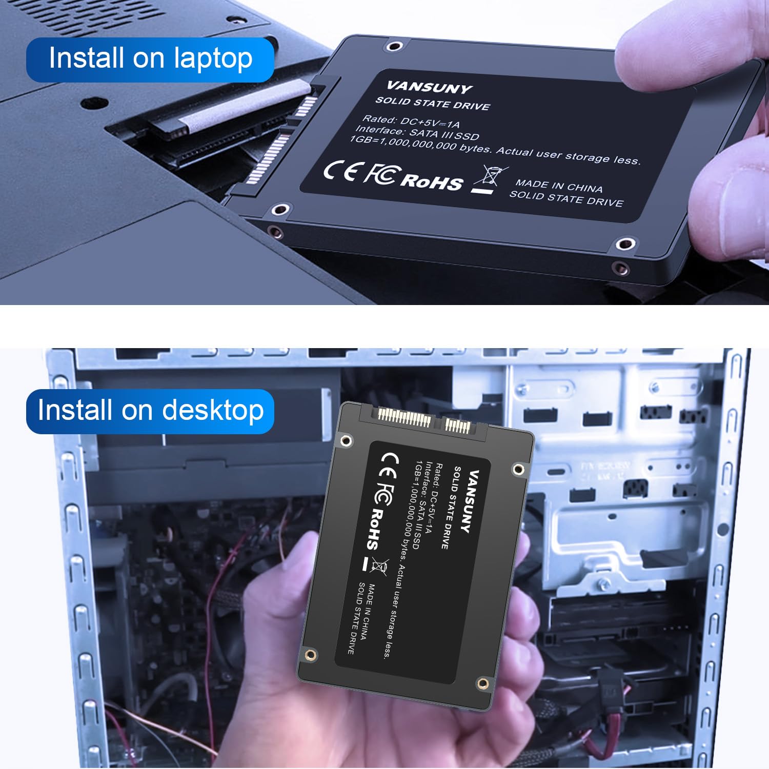 【Universal Compatibility】 Designed with a standard 2.5-inch form factor and SATA III interface, this SSD is compatible with most laptops, desktops, and gaming systems. Perfect for replacing old hard drives or upgrading existing storage.