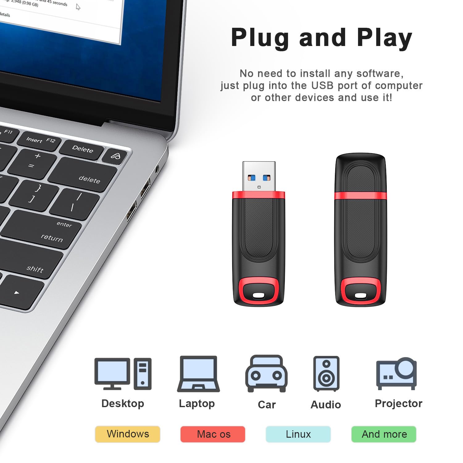Super Fast Data Transfer: Equipped with USB 3.0, this thumb drive offers read speeds up to 80MB/s and write speeds up to 30MB/s. Transfer movies, videos, and large files in seconds – saves you time every day!
