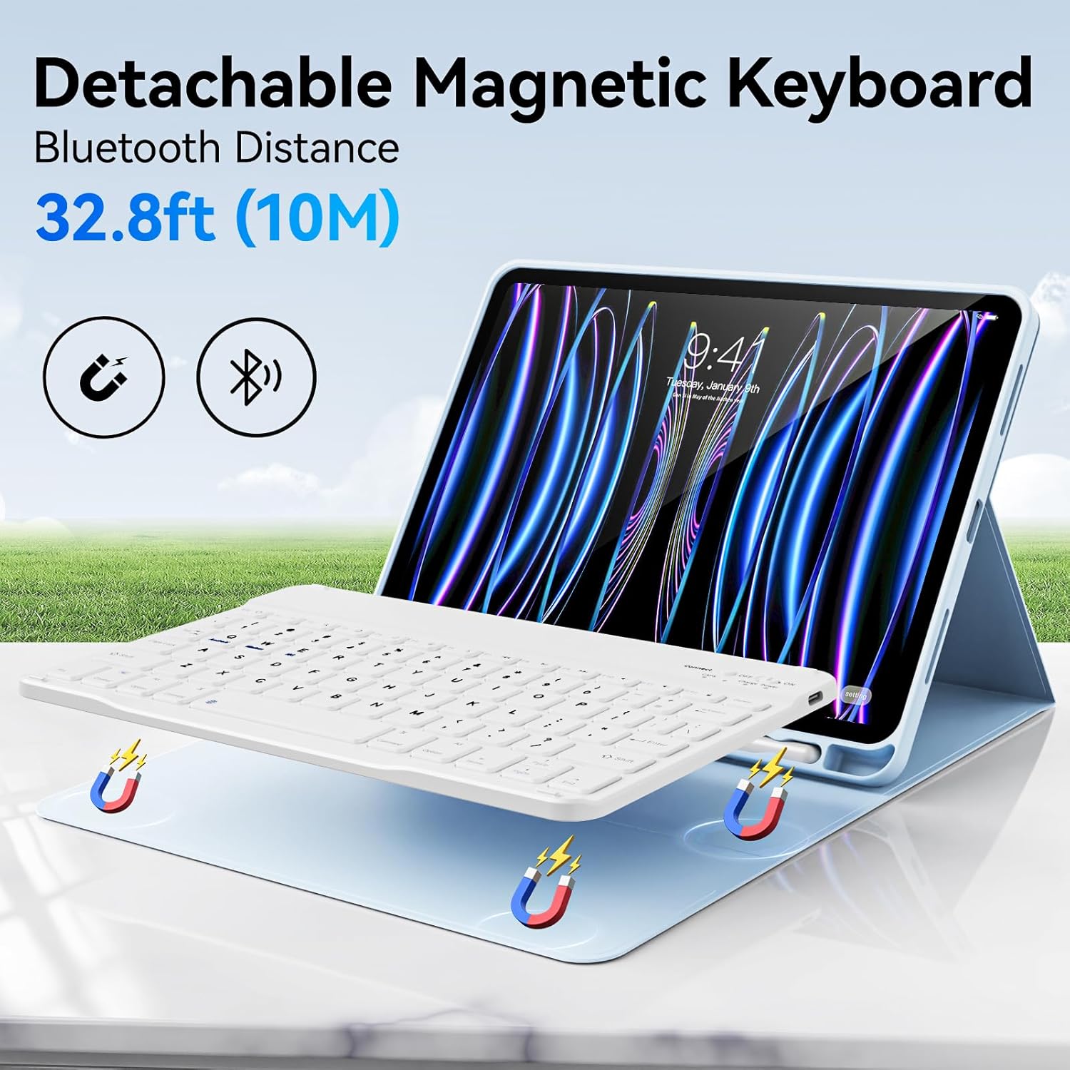 Bluetooth Wireless Keyboard : This iPad Pro 11 keyboard is magnetic so it can be easily repositioned or removed from the case. Equipped with useful shortcut keys and compatible with IOS, Windows, and Android systems, provide you with ultimate convenience